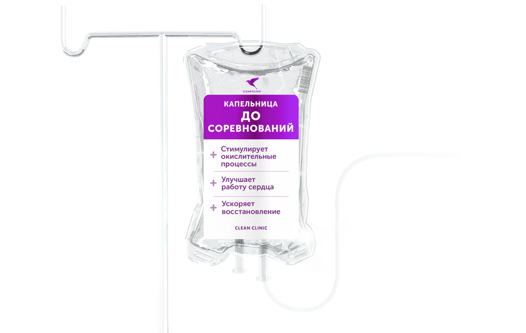 Не упустите шанс стать лучшей версией себя с помощью капельницы "До соревнований"! Посещая нашу клинику инфузионной терапии, вы обеспечите себе здоровый и энергичный путь к вершинам спортивных успехов. Уверены, результаты не заставят себя ждать!