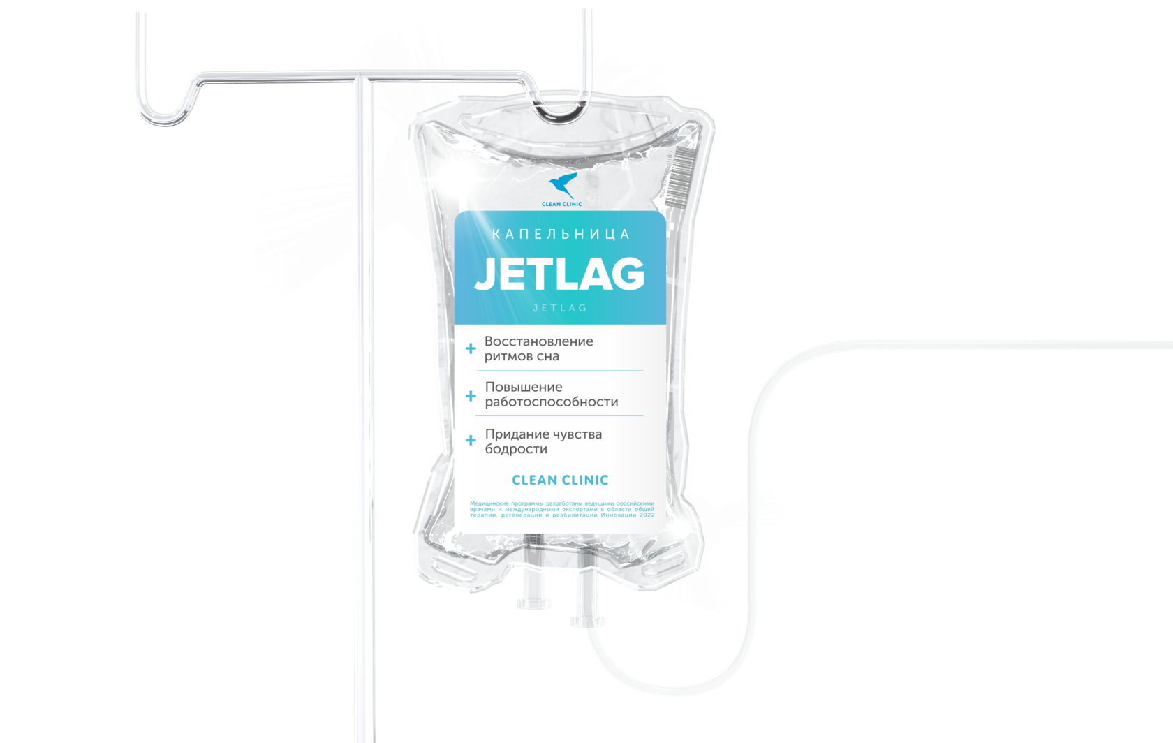 Откройте для себя капельницу "Jetlag" – идеальное решение для путешественников и ночных работников, страдающих от негативных последствий смены часовых поясов и нарушения режима сна. Наш курс инфузионной терапии эффективно борется с такими неприятными симптомами, как бессонница, головная боль и потеря аппетита.