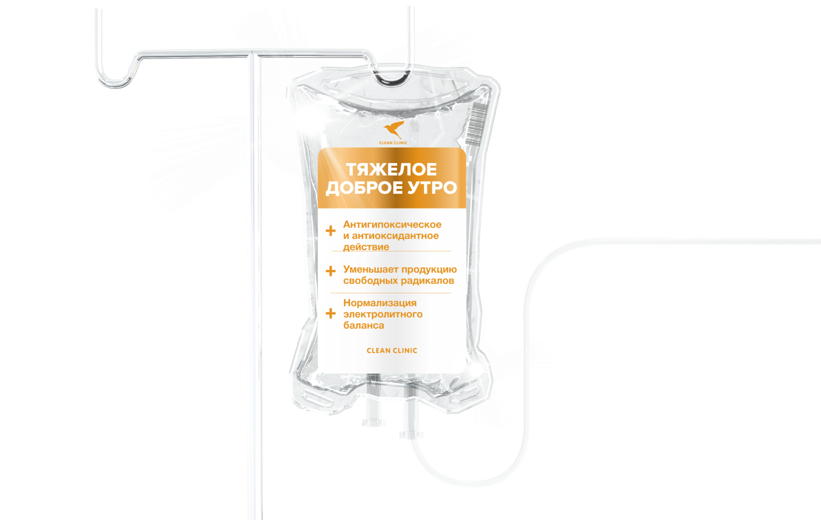 Представляем Вам уникальную капельницу "Тяжелое доброе утро" – идеальное решение для быстрого восстановления после выраженной интоксикации организма.